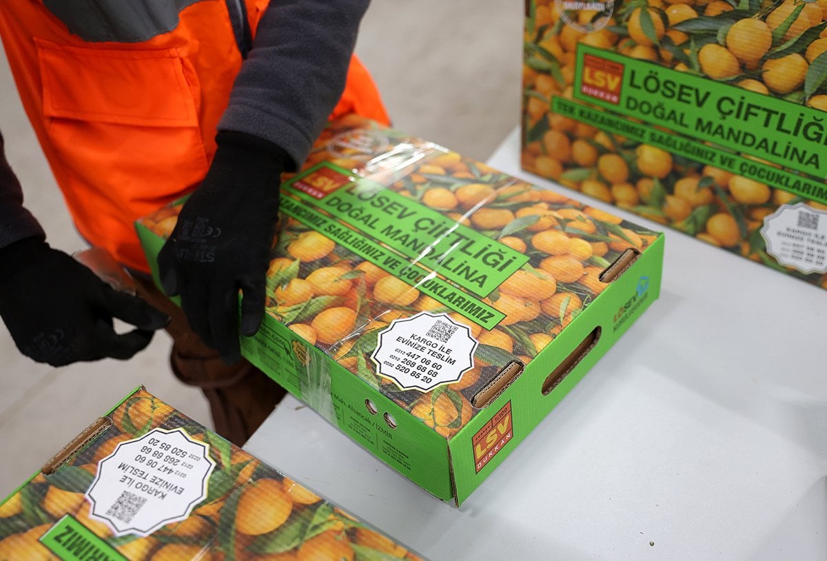 Mandalinalar burada büyüklüklerine göre 3, 6 ve 9 kiloluk karton kutu veya filelere doldurulduktan sonra Türkiye'nin farklı noktalarından "LSV Dükkan" aracılığıyla gelen siparişler için kargoya teslim ediliyor.