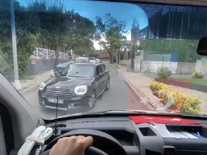 Beşiktaş'ta cip sürücüsü, ters yönden geldiği gerekçesiyle durumu acil olduğu iddia edilen hasta taşıyan ambulansa yol vermeye yanaşmadı. Ambulansın şoförü ile cip sürücüsü arasında yaşanan 'ters yön' tartışması araç kamerasına yansıdı.