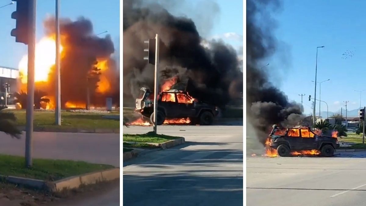 Olay, sabah saatlerinde, Antalya'nın Kepez ilçesi Altınova Sinan Mahallesi Yeni Hal yolunda meydana geldi. Seyir halindeyken dönel kavşağa giren cipten bir anda dumanlar yükselince, kimliği öğrenilemeyen sürücü, aracın dışına çıktı.