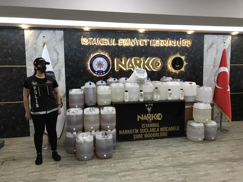 Operasyon neticesinde adreste yapılan aramalarda, 248 kilo 920 gram sıvı metamfetamin, 533 kilo 140 gram uyuşturucu madde imalatında kullanıldığı değerlendirilen kimyasal madde ve çok sayıda uyuşturucu madde imalatında kullanılan materyal ele geçirildi.
