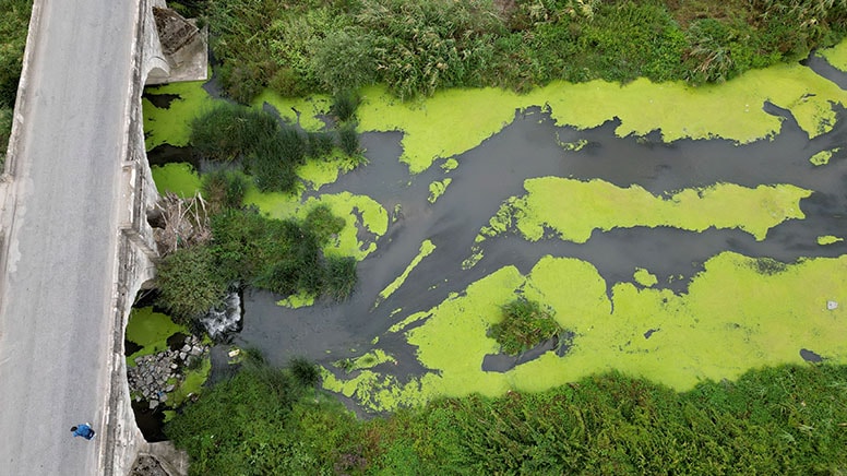 Kuraklık nedeniyle akışı durma noktasına gelen Lüleburgaz Deresi'nde yosun oluştu.