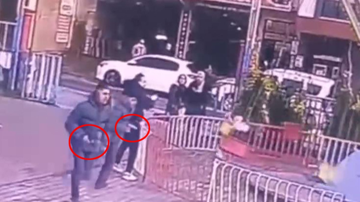 Öte yandan saldırı anı güvenlik kamerasına yansıdı. Görüntülerde, saldırı anında oyuncakta bulunan çocuğunu bekleyen bir babanın ellerini kaldırarak saldırganları durdurmaya çalıştığı da görülüyor.