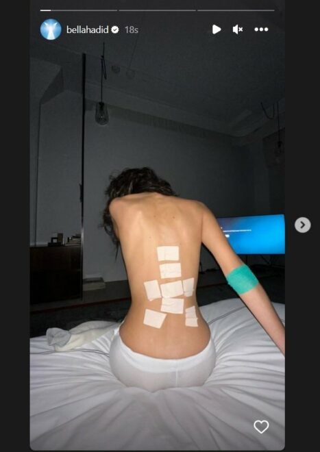 Instagram hesabından paylaşım yapan model, yatakta üstsüz poz vererek sırtındaki bantları gösterdi. Ünlü isim bir sonraki paylaşımında ise yer alan vücudundaki morluklar ise sevenlerini korkuttu.