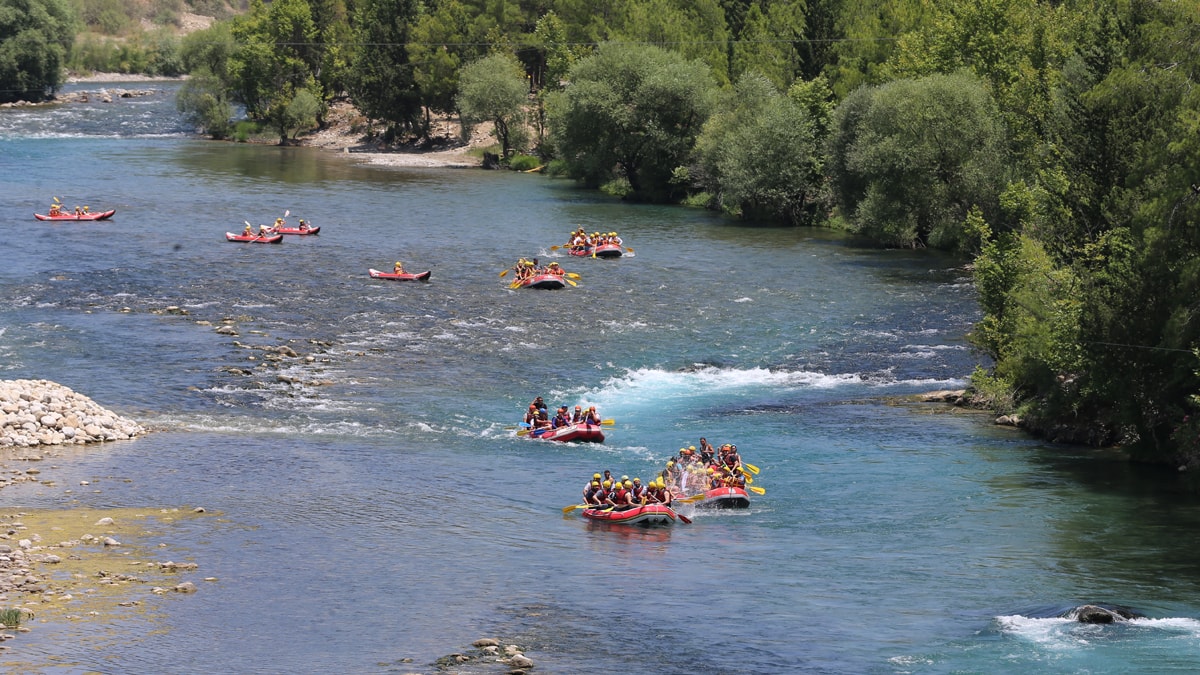 Köprüçay'ın serin sularında yaklaşık 14 kilometrelik parkurda gerçekleştirilen rafting turları, turistlere doğayla baş başa unutulmaz bir deneyim sunuyor. Yaklaşık 4 saat süren etkinlikler sırasında verilen molalarda katılımcılar yüzerek serinleme imkanı buluyor.