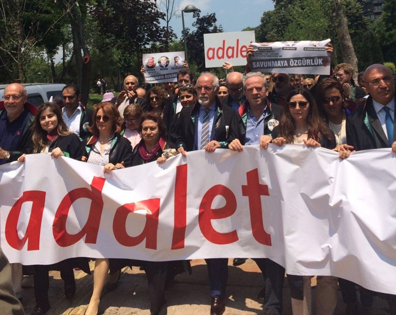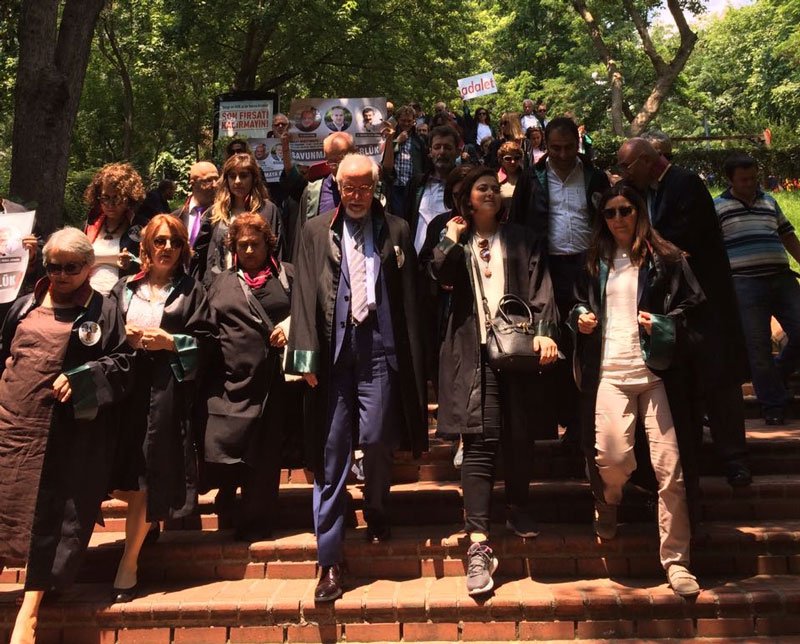 Saat 13.00'de nöbete destek için gelen İstanbul Barosu yönetimi ve avukatlar Maçka Parkına Harbiye Askeri Müzesi'nin önünden cübberiyle yürüyerek geldi...'MUHALEFET SUSTURULMAYA ÇALIŞILIYOR