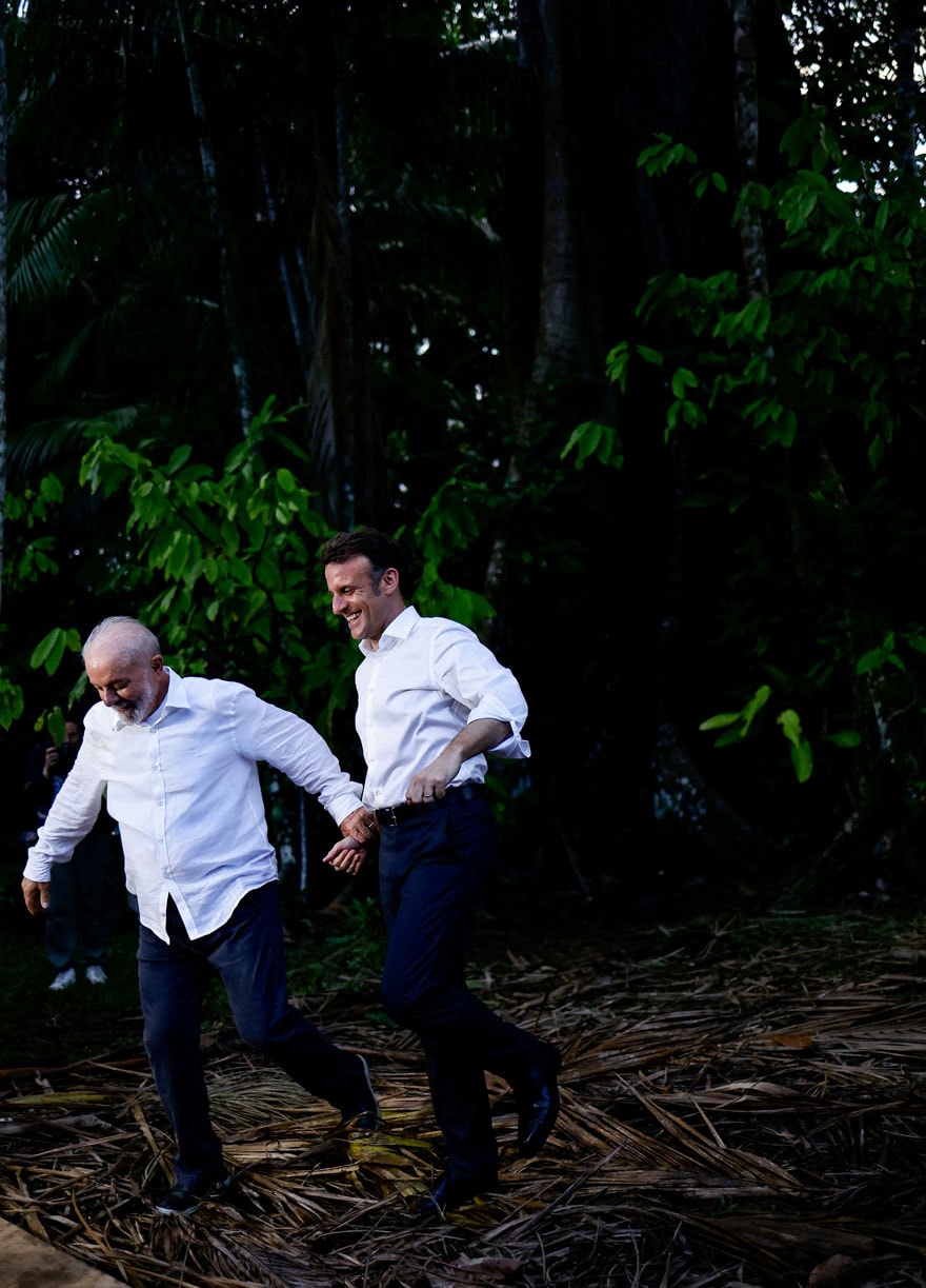 Macron ve Lula'nın Amazon ormanlarında el ele yürüdüğü, güneşin altında teknede gülümsediği, selfie çektiği ve sık sık sarıldığı fotoğraflar, Brezilya basınında "düğün albümü" diye nitelenerek dalga konusu oldu.