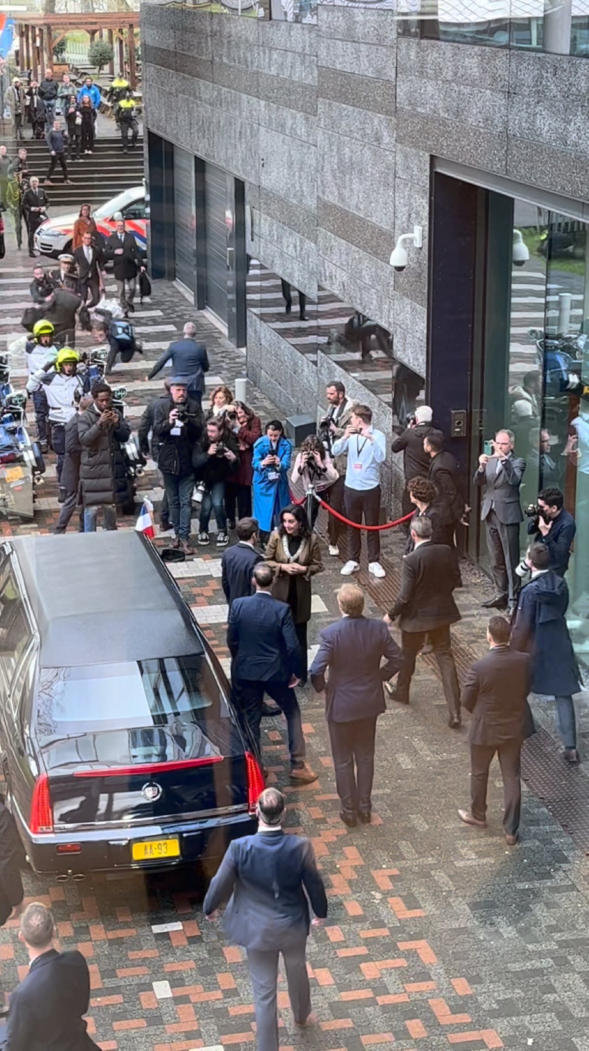 Macron Hollanda temaslarını sürdürüyor.Macron, protestocuya müdahale edilirken, Amsterdam Belediye Başkanı Femke Halsema ve Hollanda Kralı Willem-Alexander ile sohbetine devam etti.