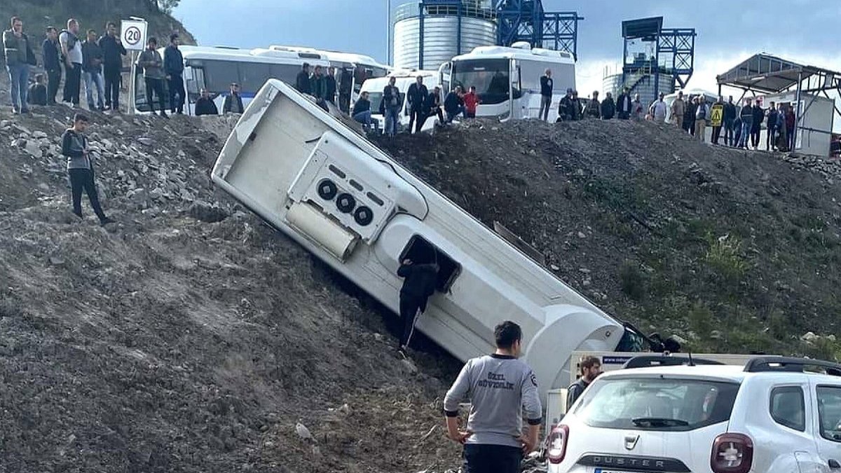 Maden işçilerini taşıyan minibüs devrildi! Yaralılar var
