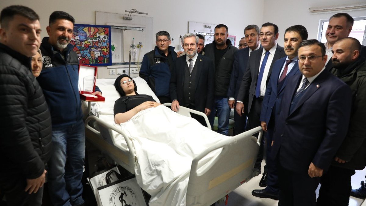 Kahramanmaraş'taki Atabey Apartmanı'nın enkazında mucizeyi gerçekleştiren madenciler, depremden 248 saat sonra kurtardıkları Aleyna Ölmez'i, tedavi gördüğü Ankara Üniversitesi Tıp Fakültesi Cebeci Araştırma ve Uygulama Hastanesi'nde ziyaret etti.