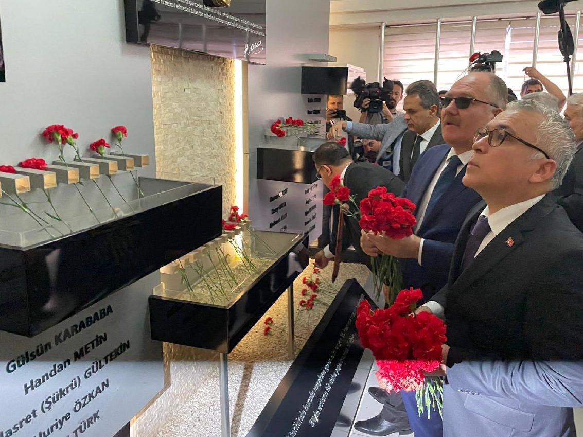 Heyet, bina içinde 2 Temmuz 1993'te yaşamını yitirenlerin isimlerinin yer aldığı anı köşesine karanfil bıraktı.