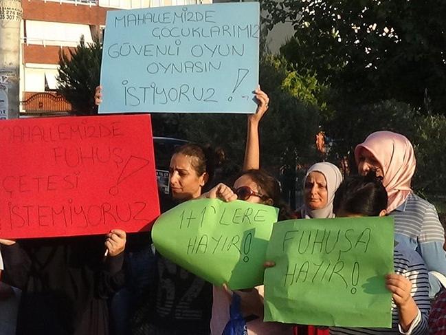 Mahalle sakinleri adına konuşan Ümit Bozbay, "Ailelerimizin, çocuklarımızın güvende olmasını istiyoruz. Ne yazık ki çevremizde 1+1 dairelerin pansiyon haline getirilip günlük kiraya verilmeye başlamasıyla mahallemizin huzuru kaçtı. Bu dairelerde çıplak balkona çıkan kızlı erkekli kişiler yüzünden, balkonlarımıza çıkamaz olduk. Camlarımızı kapılarımızı açamaz hale geldik. Çocuklarımız sokakta oyun oynayamaz hale geldi. Durum her geçen daha da kötüye gitmektedir. Araçlarla yabancı uyruklu kadınlar da bu dairelere getirilmeye başlandı. Burayı kiraya veren kişiler bize ve polislerimize saldırma cesareti göstermeye başladılar. Mahalle sakinleri olarak bu dairelerin sahiplerinin belirlenmesini ve dairelerin denetim altına alınmasını istiyoruz" dedi.