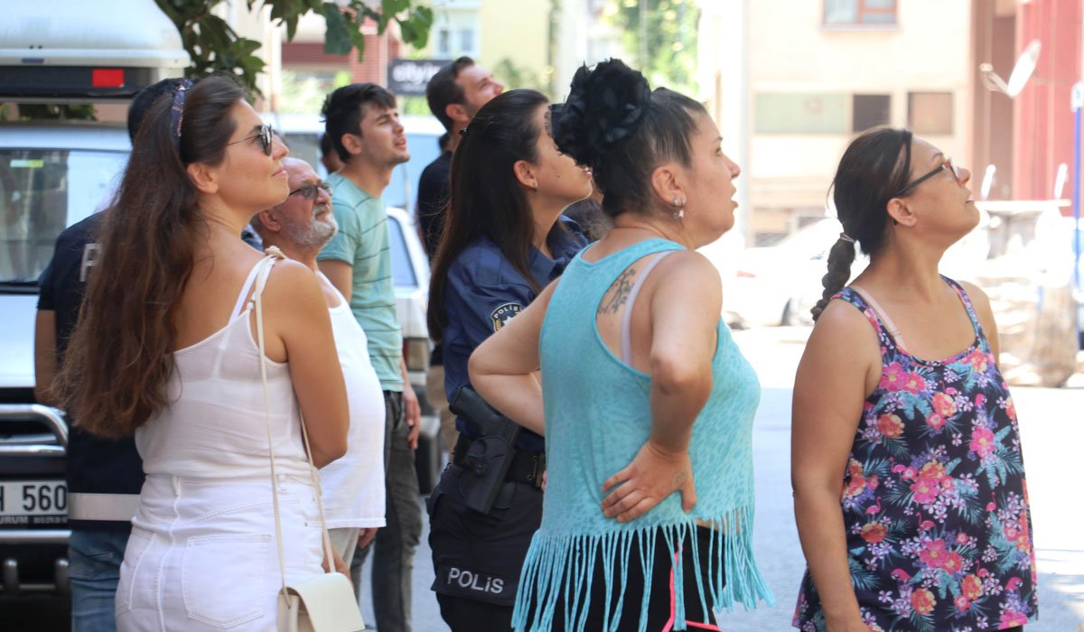 Komşuları, çevredekilere küfür eden kadın için polise ihbarda bulundu. Adrese sağlık, polis ve itfaiye ekipleri sevk edildi. Ekipler kısa sürede adrese gelirken, Sevilay T., balkondan etrafa bağırmaya, elindeki taş, kum ve diğer eşyaları atmaya devam etti.