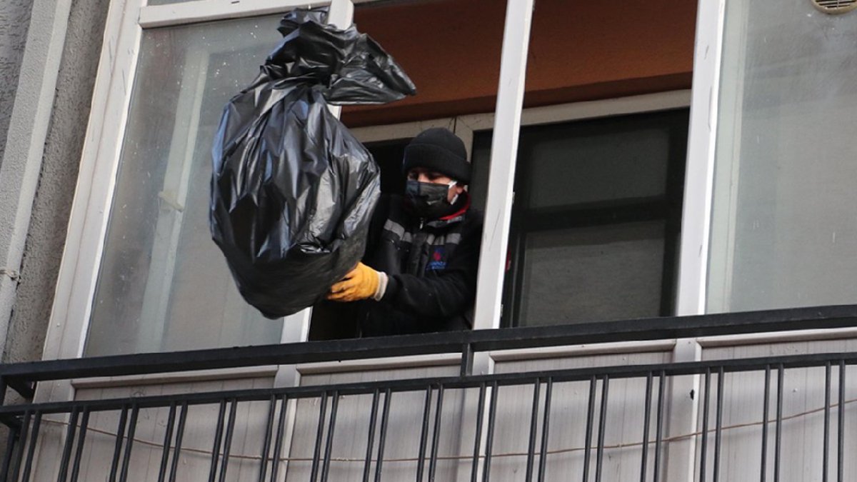 Apartmanın olduğu sokağa kamyonlar getirilirken, yol trafiğe kapatıldı. Zeynep O.nun dairesinden temizlik görevlilerince yaklaşık 40 ton çöp çıkarıldı.