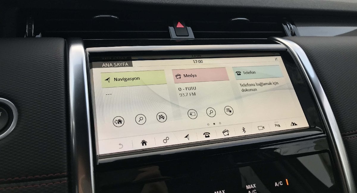 Konsolun tam ortasında kalan ana multimedya ekranı ise 10 inç boyutunda ve Jaguar Land Rover'ın diğer modellerinden tanıdık. Bu sistemin kullanımı ise her ne kadar karışık gözükse de oldukça kolay ve kullanıcı dostu. Navigasyon, bağlı akıllı telefon, Apple CarPlay, Android Auto ve müzik çalar gibi alışkın olduğumuz sistemlere erişim buradan gerçekleştiriliyor.