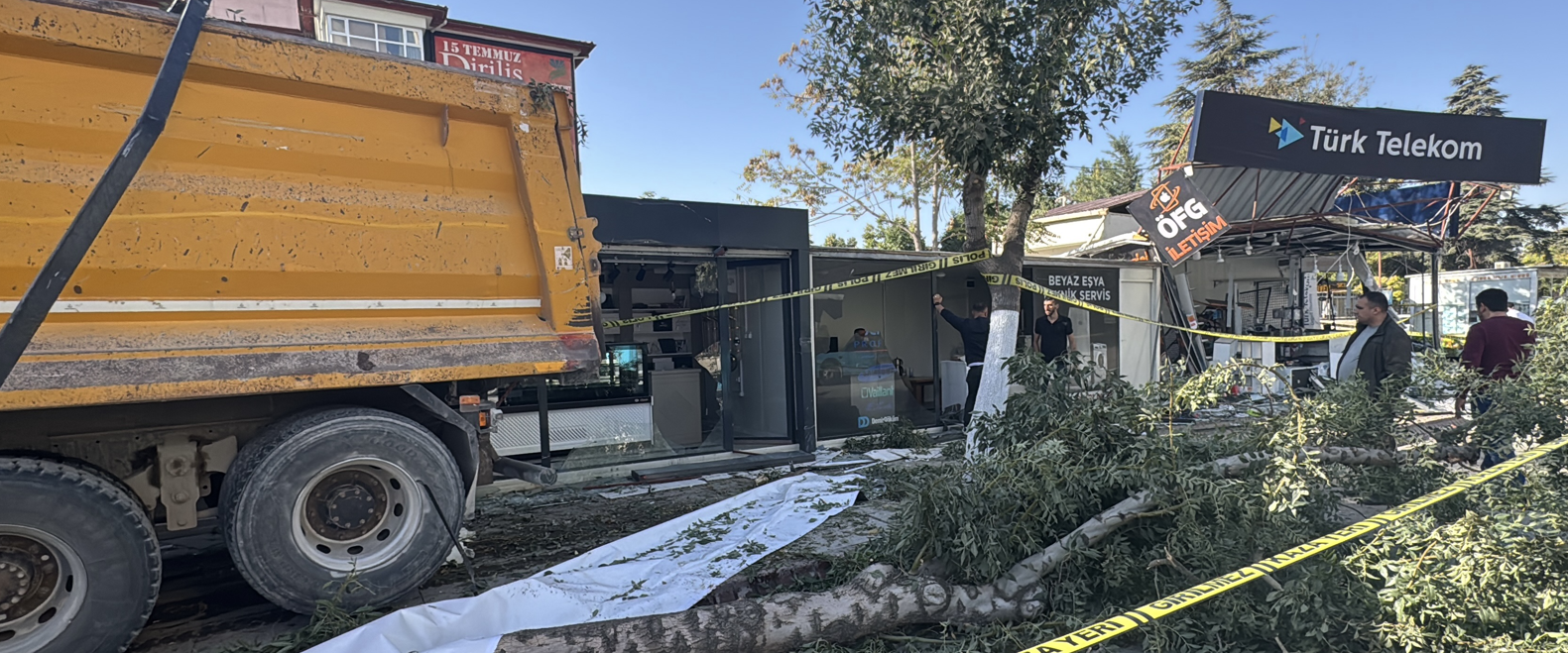 İnönü Caddesi'nde sürücüsünün kimliği henüz öğrenilemeyen 44 KS 076 plakalı kamyon, freni arızalanınca kontrolden çıktı. Kamyon yol kenarındaki 7 konteyner iş yerine çarptı.