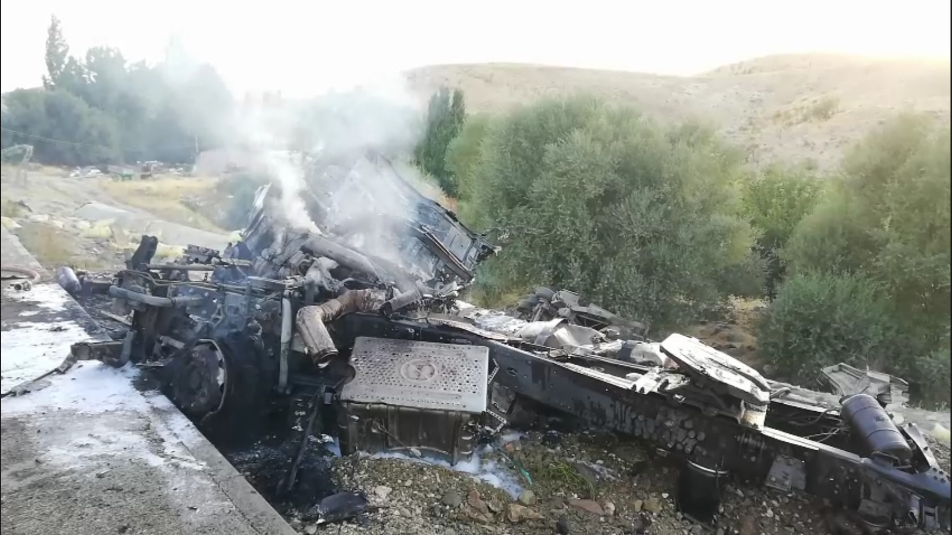 Çarpmanın etkisiyle devrilen TIR'ın kupa kısmı bir anda alev aldı. Kazayı gören çevredekilerin ihbarı üzerine olay yerine sağlık, itfaiye ve jandarma ekipleri sevk edildi.