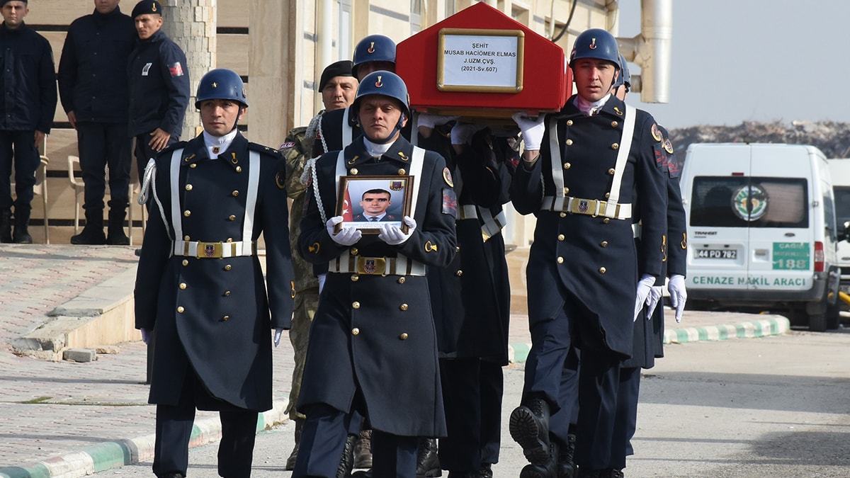 Bolu'nun Yeniçağa ilçesinde trafik kazası sonrası tedavi gördüğü hastanede şehit olan Jandarma Uzman Çavuş Musab Hacıömer Elmas'ın (25) cenazesi Malatya'da toprağa verildi.