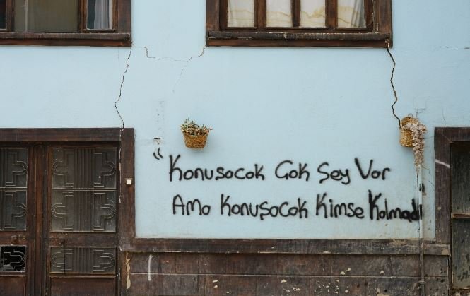 Kentten ayrılanlar, terk etmek zorunda kaldıkları evlerinin duvarlarına sprey boyayla 'Malatya'yı terk etme', 'Geri döneceğiz', 'Her şey güzel olacak, gitmedik, buradayız', 'Seninleyiz Malatya', 'Umut dolu yarınlar', 'Bizi hasret saracak', 'Konuşacak çok şey var ama konuşacak kimse kalmadı' yazdı. Yıkılan veya ağır hasar alan binaların duvarlarındaki yazılar, görenleri duygulandırdı. (DHA)