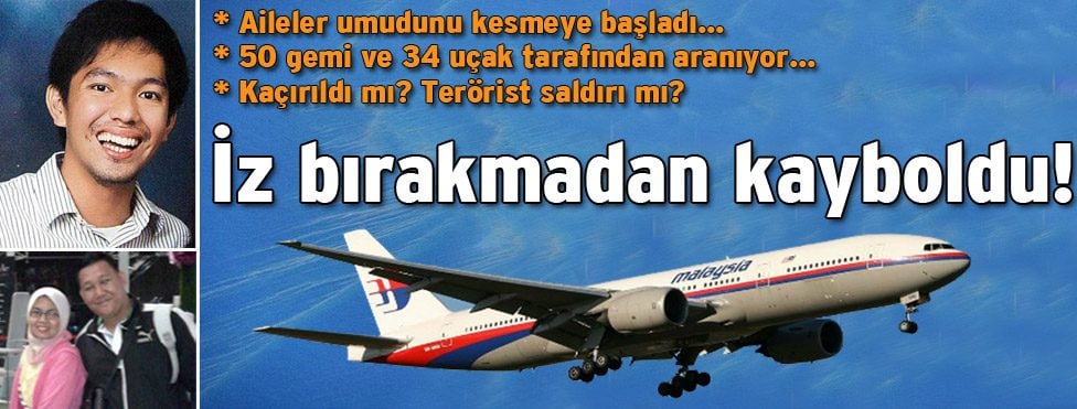 Dünya tarihinin en gizemli hava olayında dün de hiçbir ilerleme kaydedilmedi. Malezya'nın başkenti Kuala Lumpur’dan Çin’in başkenti Pekin’e doğru gitmek üzere havalanan ancak taşıdığı 239 kişiyle birlikte kaybolan Malezya Havayolları’na ait yolcu uçağı hakkında tek bir iz bile bulunamadı. Arama çalışmalarının yapıldığı alan genişletilirken, Japonya da bölgeye uçak ve arama ekibi gönderdi. Böylece aramalara katılan ülke sayısı sekize çıktı.