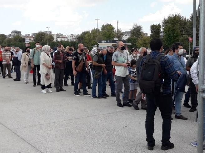 Bir vatandaş ise, etkinlik alanına maskesi kafasında girince polisin uyarısıyla karşılaştı. Maskesini takıp içeri girdikten sonra, maskeyi yere fırlattığı görüldü.