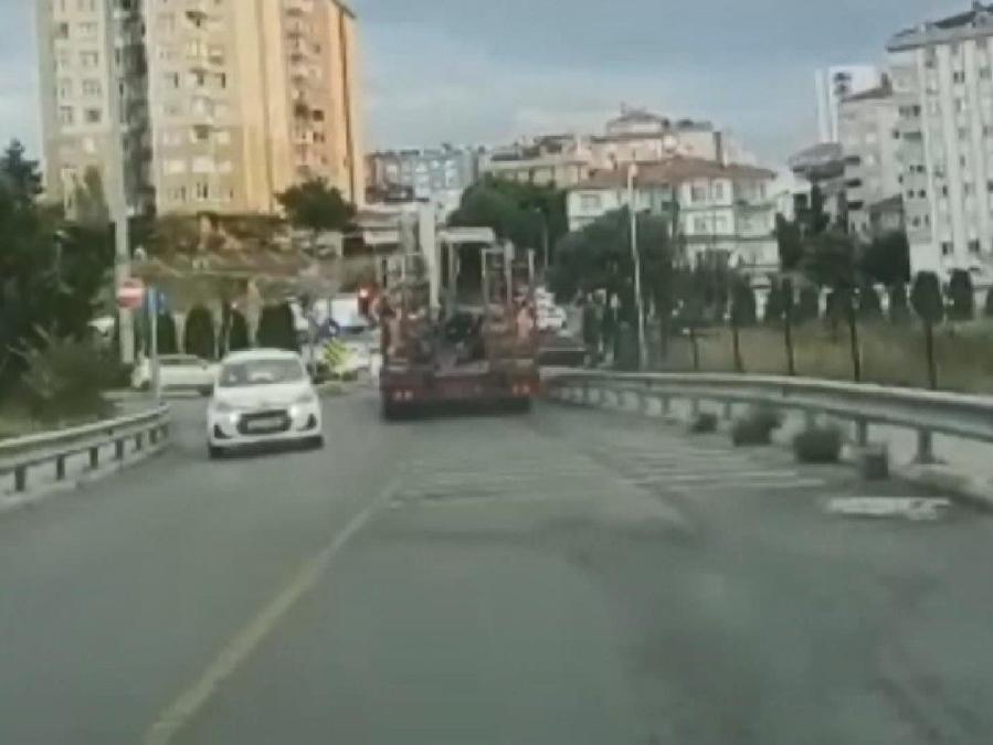 TIR şoförü tekrar aracına binip, geri geri gelerek içinde iki kişinin bulunduğu otomobili ezmeye çalıştı. Otomobildekiler büyük korku yaşarken, TIR şoförü olay yerinden ayrıldı. Cep telefonu ile görüntülendiğini anlayan şoförün, TIR'ın plakasını söktüğü görüldü.