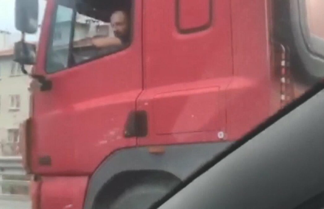 Bunun üzerine TIR şoförü ile otomobil sürücüsü Erdem Kuz arasında gerginlik yaşandı. TIR şoförü, otomobilin önünü keserek küfür ve hakaretler etmeye başladı.