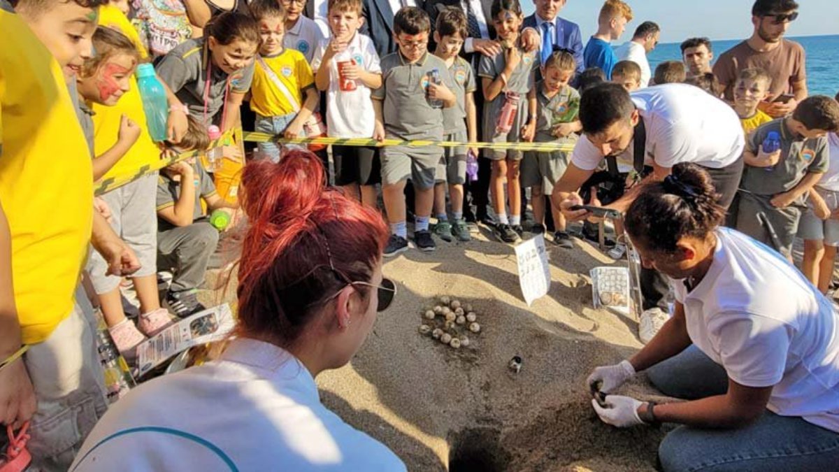 Sahildeki Mendirek bölgesinde bulunan son yuvanın açılmasına minik ve genç caretta caretta gönüllüleri de eşlik etti.