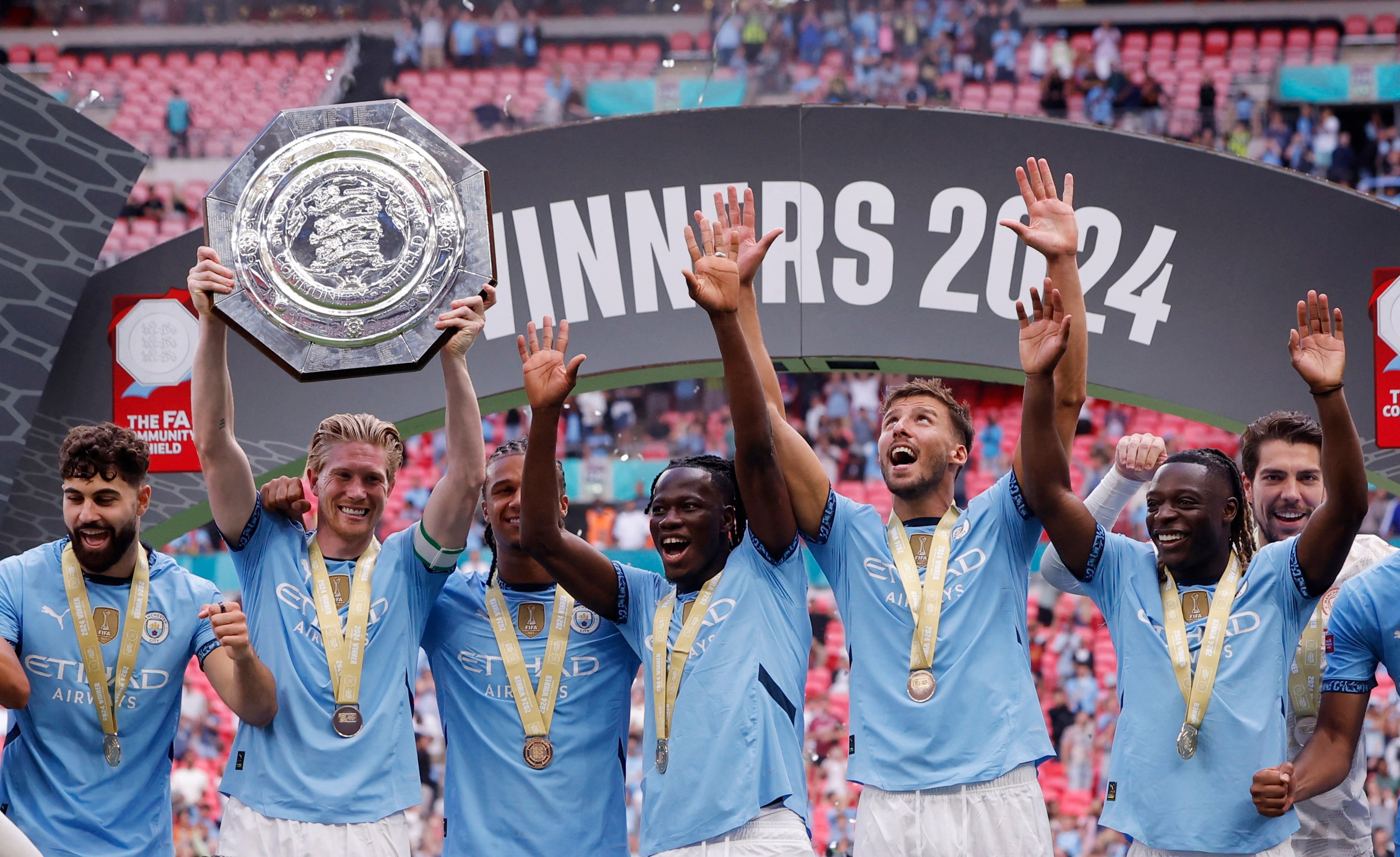 İngiltere’de Premier Lig şampiyonu Manchester City ile FA Cup şampiyonu Manchester United, Community Shield kupasında karşı karşıya geldi. Wembley Stadyumu’nda oynanan mücadelede Avustralyalı hakem Jarred Gillett düdük çaldı. Manchester City karşılaşmaya; Ederson, Lewis, Akanji, Dias, Gvardiol, Kovacic, O'Reilly, McAtee, Bobb, Doku ve Haaland ile çıktı. Manchester United ise; Onana, Dalot, Maguire, Evans, Martinez, Casemiro, Mainoo, Mount, Amad, Fernandes ve Rashford ile sahada yer aldı.