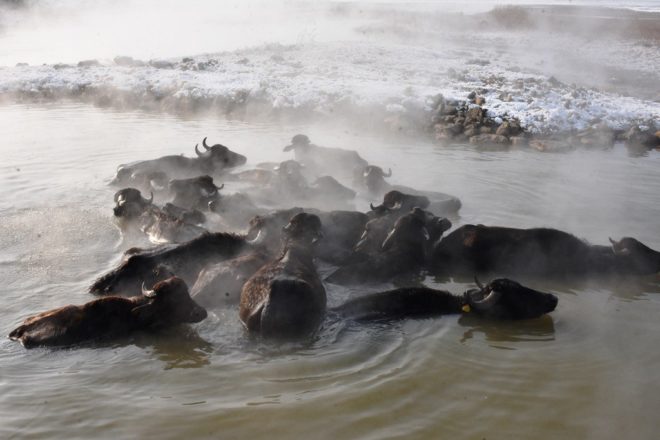 Yaz aylarında çamur ve suya ihtiyaç duyan mandalar, kış aylarında da kaplıcaya ihtiyaç duyuyorlar. Bölgede birçok noktada çıkan sıcak suyu hem mandalar kullanıyor hem de insanlar şifa bulmak için kullanıyor.