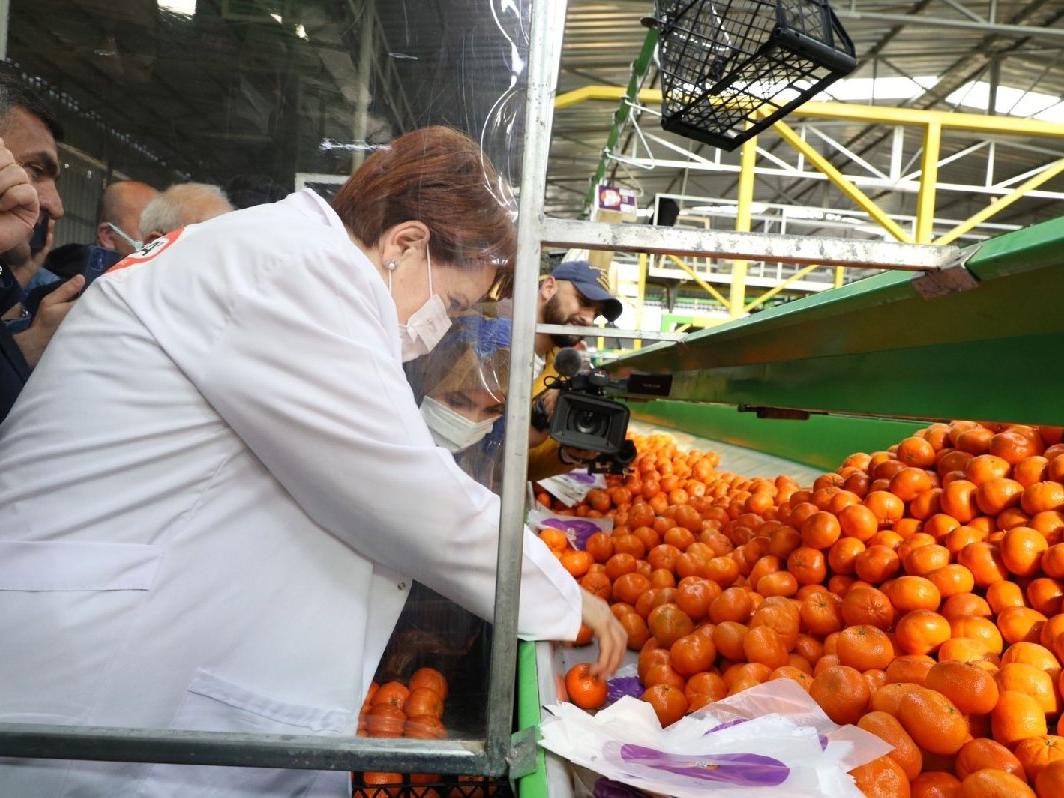 Akşener, kasaya mandalinaları dizen bir işçi kadının yanına gelerek ona yardım etti, kasaya mandalina dizdi. Akşener bu sırada, "Sen bayağı hızlısın. Bakayım ben sana yetişebilecek miyim?" dedi. İşçi kadın, "Sizin de maşallahınız var" diyerek yanıtladı. Akşener'e yardımcı olan işçi kadın, kasayı dolduran Akşener'i alkışladı. Akşener de sarılarak karşılık verdi.