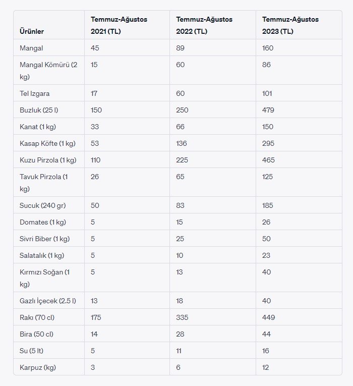Sozcu.com.tr olarak ulusal ve zincir marketlerdeki yıllık değişime baktığımızda da, mangallık ürünlerin ülke genelindeki ortalama fiyatlarının son bir yılda yüzde 43 ila yüzde 127 aralığında arttığını gözlemledik.
