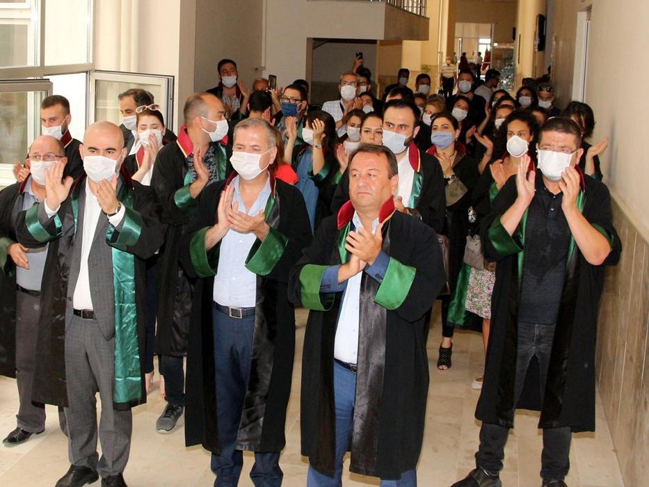 Baro Başkanı Arslan’ın açıklamasının ardından avukatlar Manisa Adliyesi’nin önünde yaklaşık yarım saatlik oturma eylemi yaptı. Avukatlar eylemin ardından dağıldı.