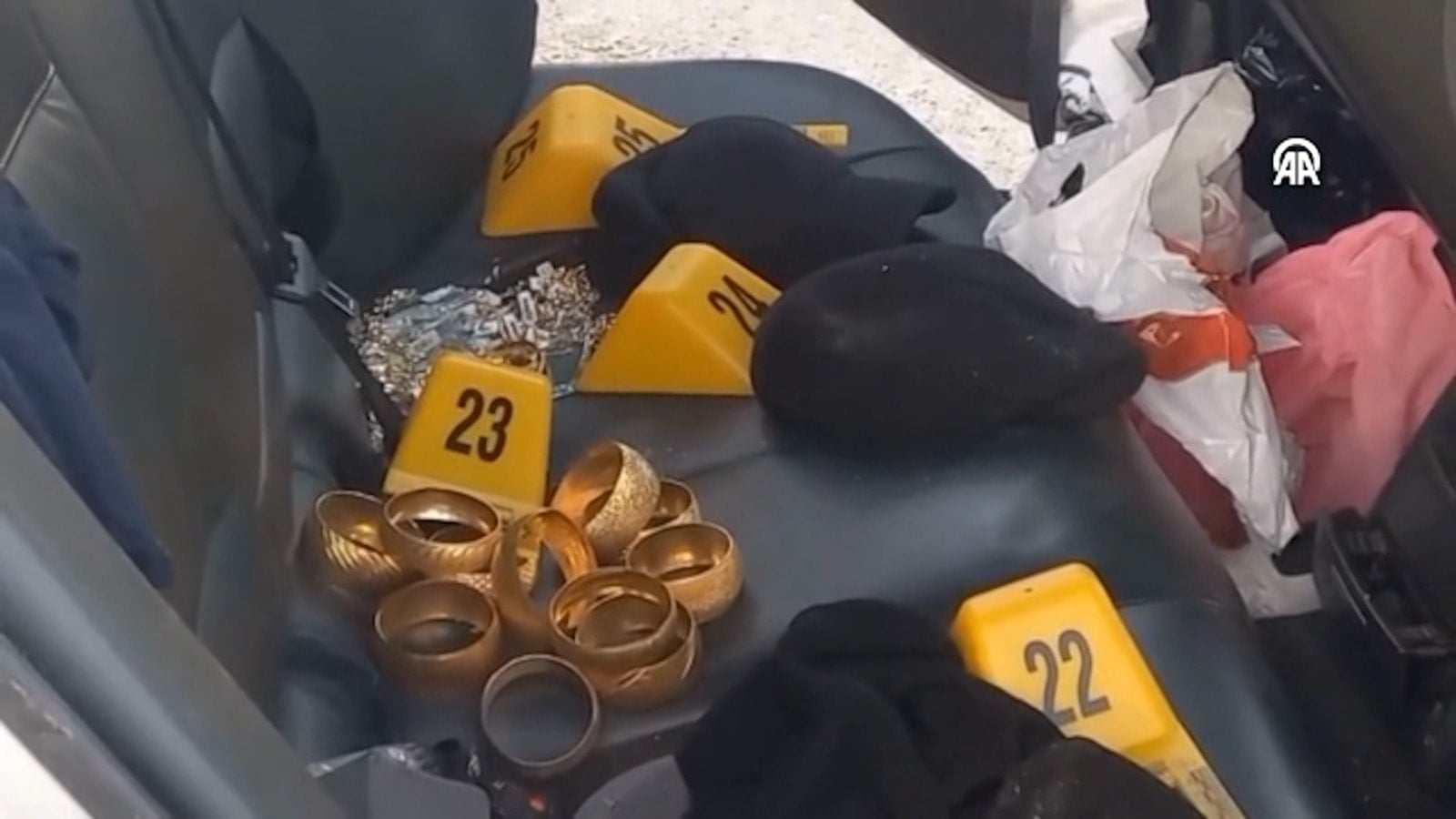 Öte yandan, şüphelilerin üzerinde ve araçta yapılan incelemede 77’si bilezik olmak üzere toplam 93 altın ziynet eşyası, 18 sahte bilezik, kepenk kumandası, maske, fener, eldiven ve yaklaşık 13 bin lira nakit para ele geçirildi. Ele geçirilen malzemeler iş yeri sahibine teslim edildi.