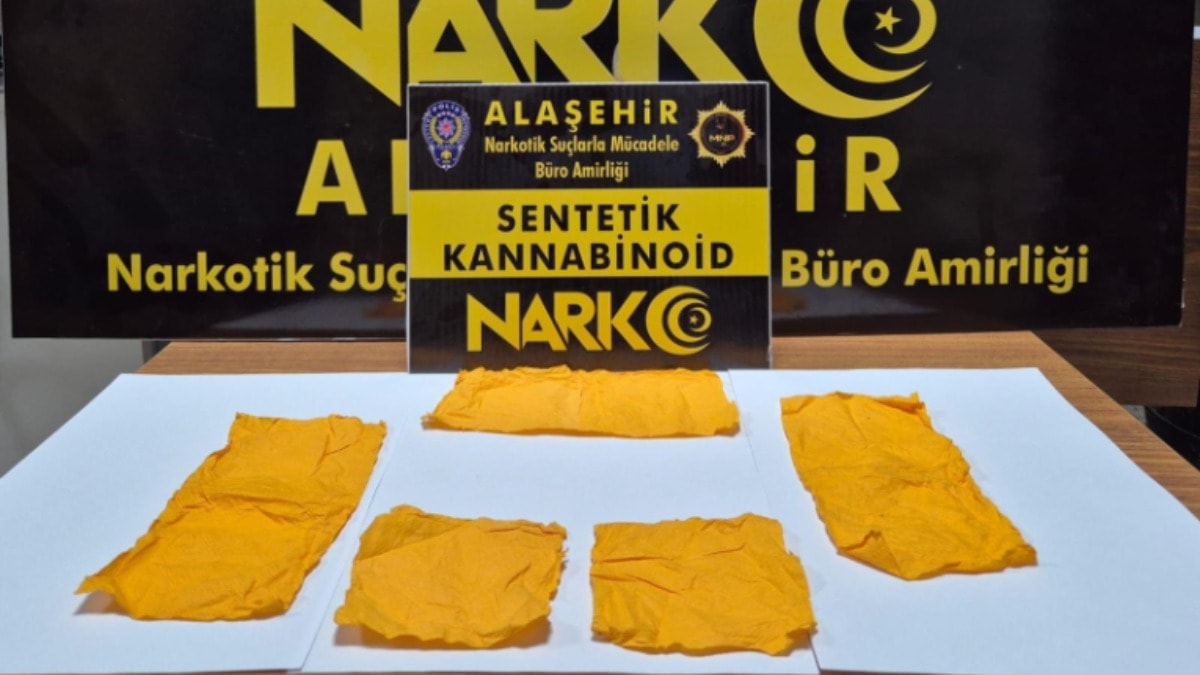 Polis, araçta bulunan D.D'nin üzerinde 5 parça halinde 3 bin 40 içimlik peçeteye emdirilmiş sentetik uyuşturucu ele geçirdi, şüpheli gözaltına alındı.