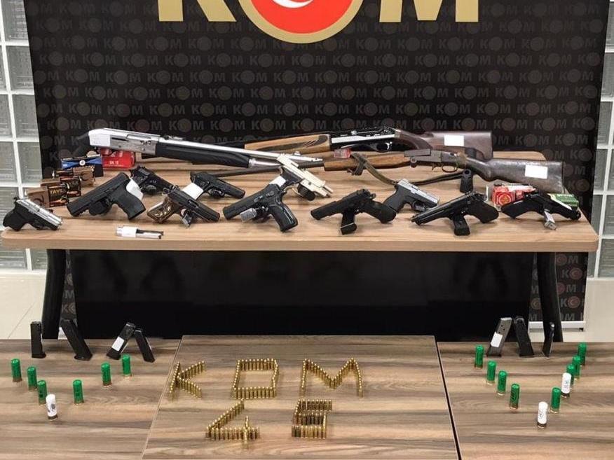 Şüphelilerin ikamet, işyeri ve araçlarında yapılan aramalarda; 13 adet ruhsatsız tabanca, 15 adet tabanca şarjörü, 7 adet ruhsatsız tüfek, 2 adet kurusıkı tabanca, 399 adet tabanca fişeği, 17 adet tüfek kartuşu, tabanca ve tüfek tamirinde kullanılan malzeme ve aletler, 11 adet uyuşturucu hap, daralı ağırlığı 1,10 gram olan metamfetamin ve 5,69 gram olan esrar maddesi, 1 adet çalıntı motosiklet, suçtan elde edildiği değerlendirilen 2 bin TL para ele geçirildi. Şüpheliler hakkında adli işlemlerin devam ettiği öğrenildi. (İHA)