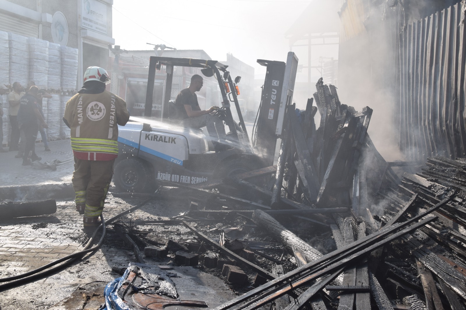 Yanan kerestelerden sıçrayan alevler, hemen yanındaki bir iş yerinin deposuna da ulaştı. İtfaiye ekiplerinin hızlı müdahalesiyle yangın kontrol altına alınırken, iş yerinde hasar meydana geldi.