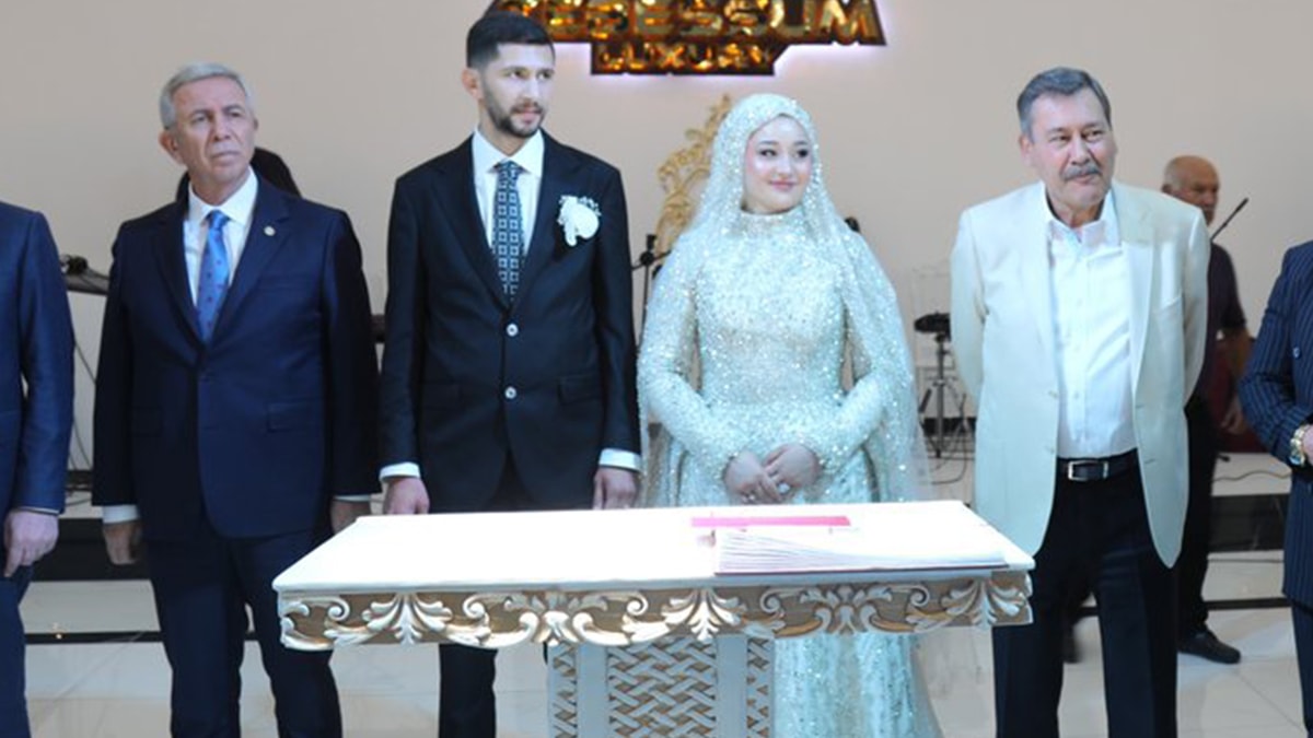 Ankara Büyükşehir Belediye Başkanı Mansur Yavaş ve AKP'li Melih Gökçek damadın nikah şahitliğini yaptı.