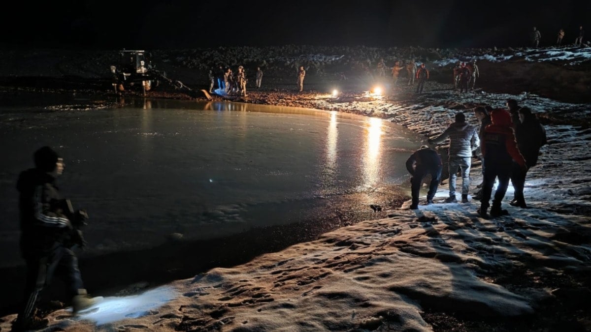 Soğuk hava nedeniyle göletin yüzeyini kaplayan buzun bir kısmının kırık olduğu tespit edildi.