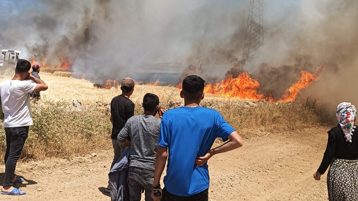 Mardin'de Akşam saatlerinde Kızıltepe ilçesine bağlı kırsal Tıraşlı ve Büyük Ayrık mahalleleri ile Mazıdağı ilçesine bağlı kırsal Şanlı Mahallesi’nde arpa ve buğday ekili tarlalarda henüz bilinmeyen nedenle yangın çıktı.