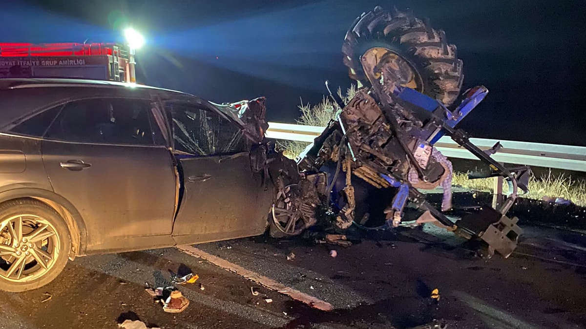 Çarpmanın şiddetiyle savrulan traktör ters dönerken, kazada araçlarda bulunan Ali A. (61), Davut A. (15) ve Şükrü U. (45) yaralandı.