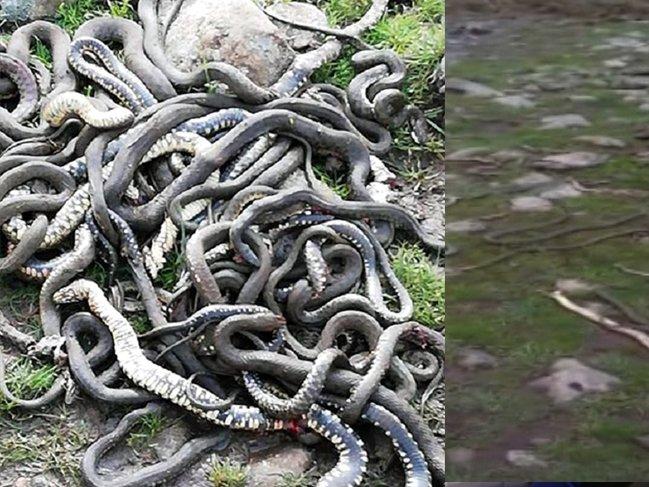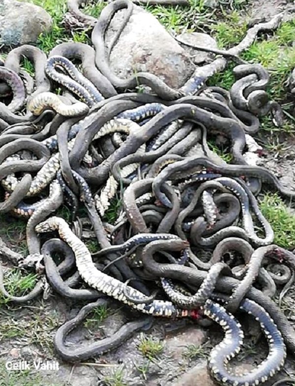 Mahallede yaşayanlar onlarca yılanı öldürdü. Foto: DHA