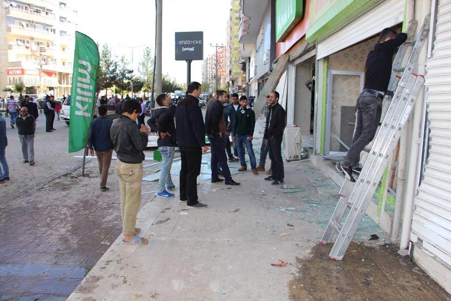 FOTO:DHA - Kızıltepe esnafı sabah dükkanlarını açmak için bölgeye gelince saldırının izleriyle karşılaştılar.Mardin'in Kızıltepe İlçesi'nde PKK'nın dün gece Askerlik Şubesi'ne bomba yüklü araçla düzenlediği, bir askerin şehit düştüğü, Suriyeli bir inşaat bekçisinin de öldüğü, saldırının izleri gün ağarınca ortaya çıktı.
