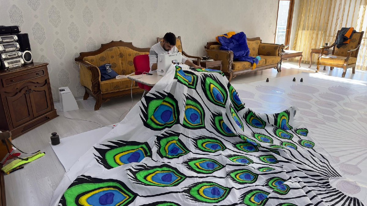 Tavus kuşu uçurtmasını yaparken zorlandığını anlatan Mungan, kırkyama tekniğiyle 5 ayda uçurtmayı tamamladığını aktardı.