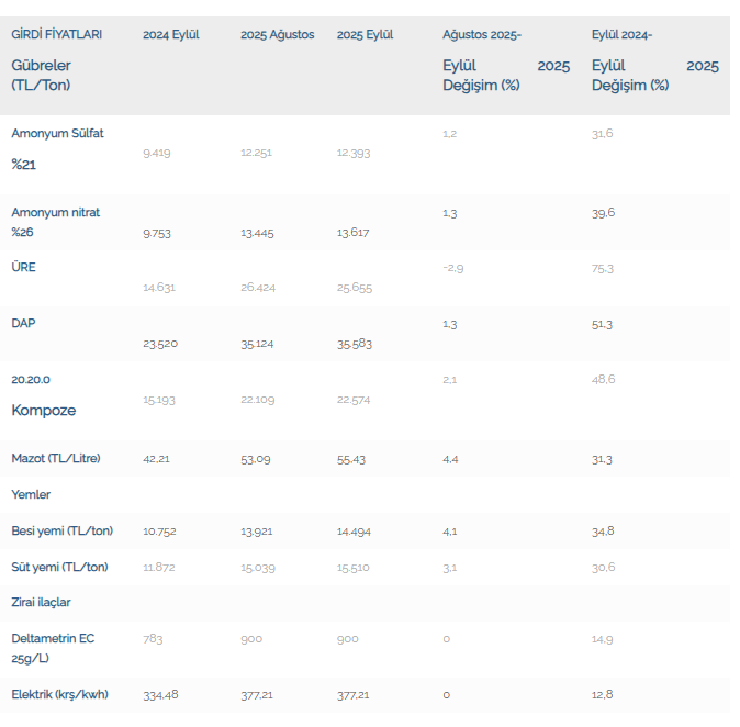 GİRDİ MALİYETLERİ YÜKSELDİ