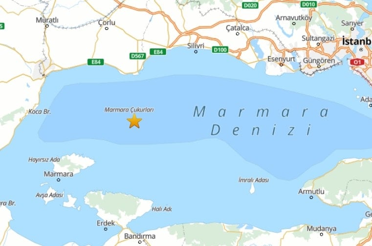 Afet ve Acil Durum Yönetimi Başkanlığı (AFAD), saat 13:43'te Marmara Ereğlisi açıklarında 3,5 büyüklüğünde deprem meydana geldiğini açıkladı.