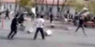 Karşıt görüşlü arasında çıkan kavga amatör kamera tarafından kaydedildi.