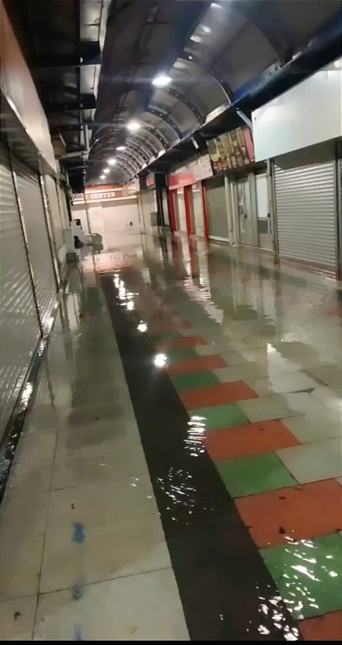 Tepe mahallesindeki dünyaca ünlü Kapalı Çarşı'da su birikintisi oluştu. Çarşının tavanından ve çatlak borulardan akan yağmur suları yolu adeta göle çevirdi.