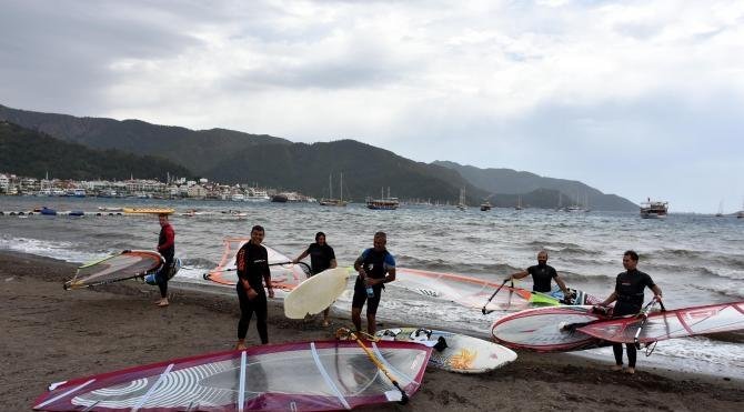 MUĞLA'nın Marmaris İlçesi'nde saatteki hızı 30 kilometreye ulaşan lodos denizcileri olumsuz etkilerken; bazı tatilci ve turistler ise rüzgarın keyfini çıkardı.