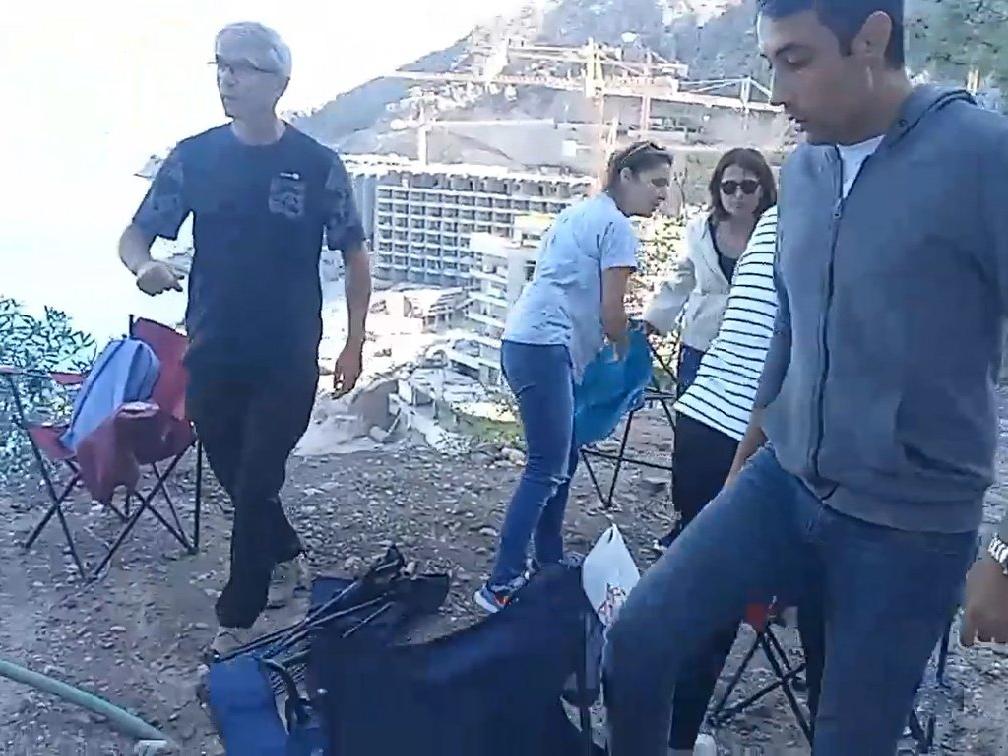 “Milli parkta gezmek ve oturup sohbet etmek için alana giden vatandaşlar, Sinpaş’ın çalışanları tarafından video görüntülerinden görüleceği üzere şiddet uygulanarak engellendi, tehdit edildi ve malzemeleri tekmelenerek milli parka sokulmak istenmedi. Bu eylemleri Anayasanın 23. maddesine ve TCK’nın 262. maddesine göre suç teşkil etmektedir. Fakat ne yazık ki; nöbet eyleminde gölgelik kurduğumuz için polis tarafından gözaltına alındığımız milli parkın bu noktasında Sinpaş, güvenlik binası (seyyar oda), malzeme, araç ve gölgelikli seyir terası yapıp güvenlik personeli ile vatandaşların milli parka girişine engel olmaya dün olduğu gibi bugünde devam etmektedir.”