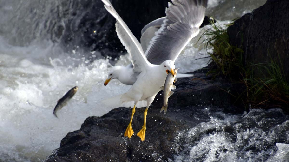 Alaska'daki somon balıkları gibi suyun akışının tersine yüzerek engelleri aşan inci kefallerinin bu görüntüsünü ise görsel şölen sunuyor. Bu dönemde martılar ise kolay avlayabildikleri balıkları yemek için derelerde nöbet tutuyor.